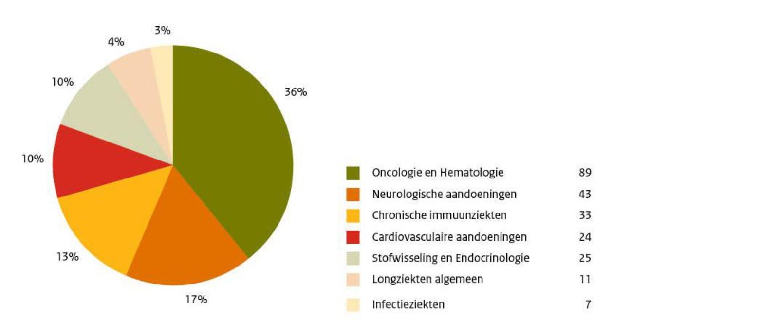 Figuur 3. Aantal geneesmiddelen in indicatieuitbreidingen in klinische studies per domein